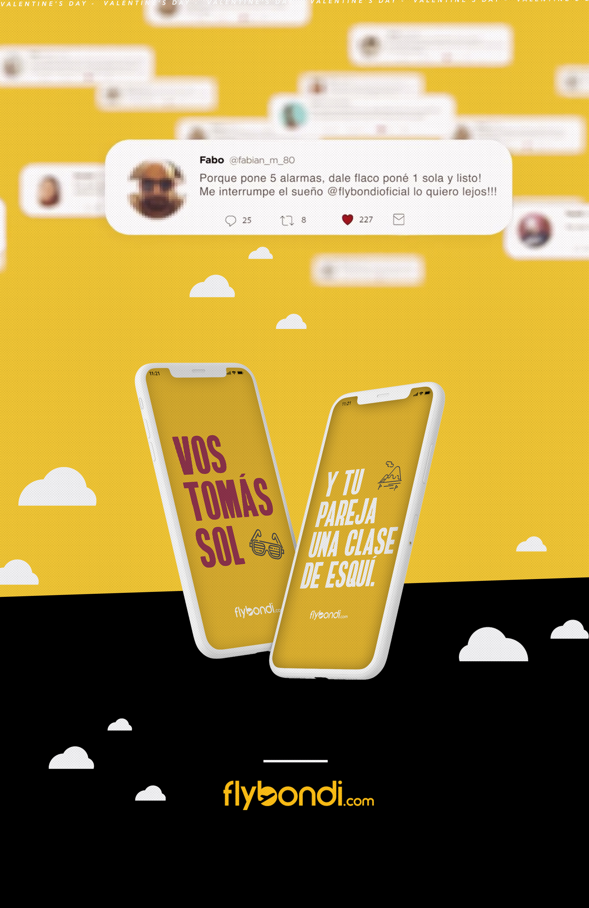 Data shows that during quarantine, a high percentage of couples broke up. So for Valentine’s Day, Flybondi set out to save love. We launched "I want you away", a promo that let couples win a trip together, but to two different destinations.